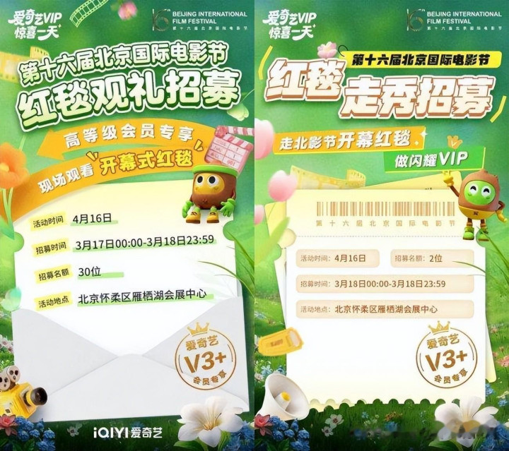 今年,爱奇艺也继续为VIP会员朋友们带来线上线下一体化的北影节专属权益体验。线上,爱奇艺精心搭建“云上北影节”专区,进行开闭幕式及红毯仪式高清直播,并特设“天坛礼赞·历届佳片展映”“热播续作·系列新片放送”“AI视界·前沿探索之旅”“动画热榜·高分必看佳作”等七大特色观影主题,汇集海内外众多优质影片,覆盖战争、喜剧、科幻、动作、犯罪、悬疑、青春、励志等类型,充分满足VIP会员多元化观影需求。
